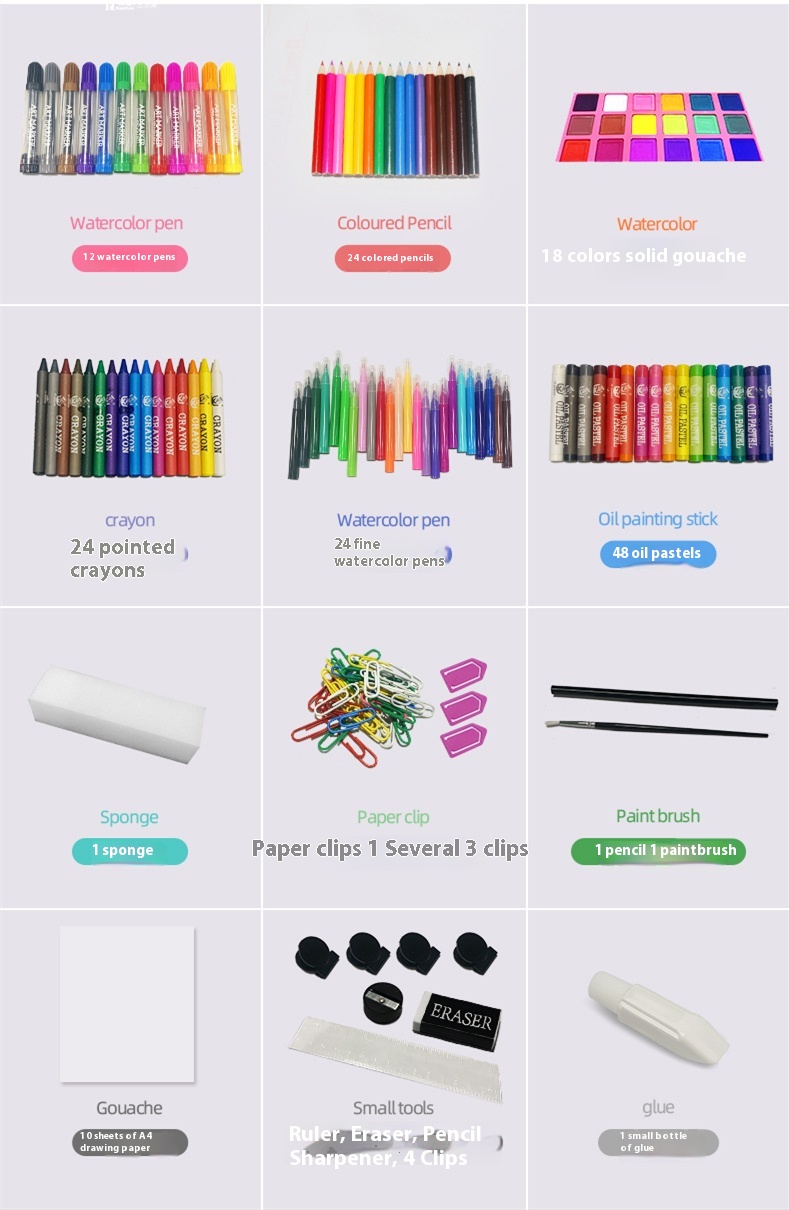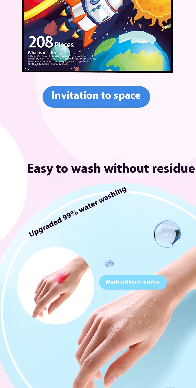 - Comprehensive 208-Piece Art Set: Includes watercolor pens, crayons, oil pastels, colored pencils, and a drawing board to meet all creative needs.