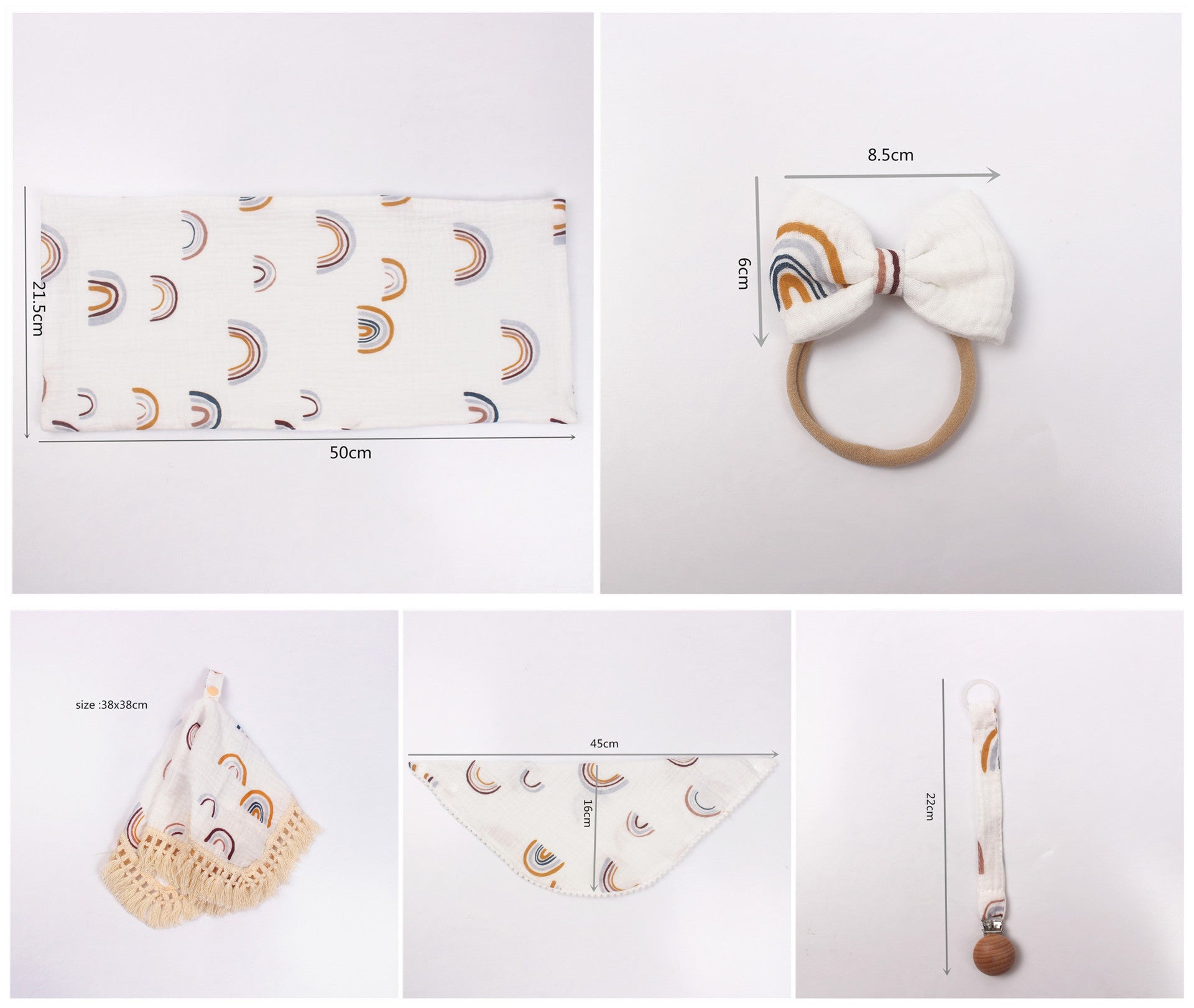 - Complete Newborn Essentials Set: Thoughtfully curated with an appeasing towel, socks, saliva towel, teething ring, and hair band-covering everyday baby needs in one elegant package.